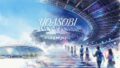 YOASOBIのドーム公演をイメージした水彩画風のアイキャッチ画像。昼の福岡ドームから夜の京セラドームへと移り変わる幻想的な風景の中に「YOASOBI」の文字が配置されている。 YOASOBI